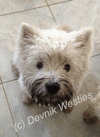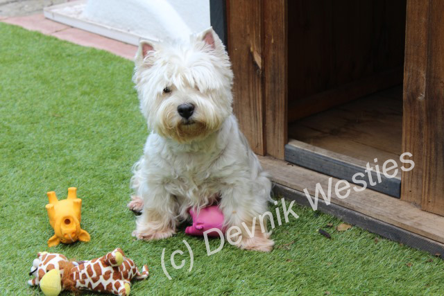 Ch. Devnik Highland Lily enjoying her retirement.
